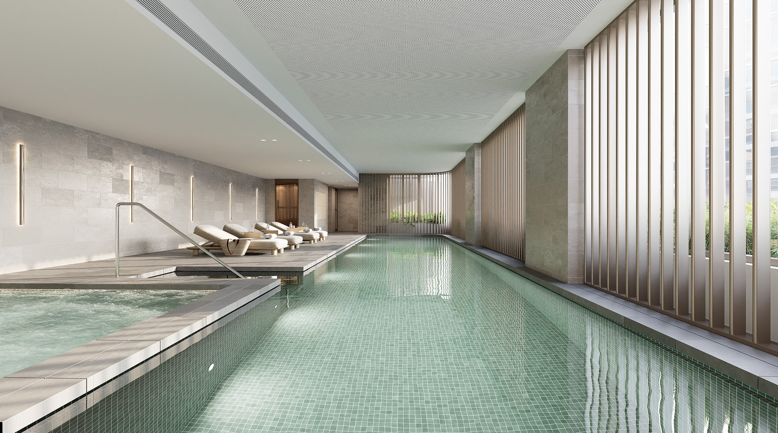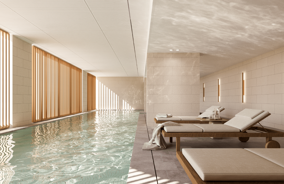 WeAreLiving Queens offers a world-class suite of resident amenities designed to promote wellbeing, connection, and convenience. Residents can enjoy the Wellness Hub, featuring a swimming pool, spa, steam room, and cold plunges — perfect for relaxation and rejuvenation. The community also includes co-working spaces with bookable meeting rooms, a resident lounge with fireplace and TV, a bookable event space with communal kitchen, and private dining rooms ideal for entertaining
